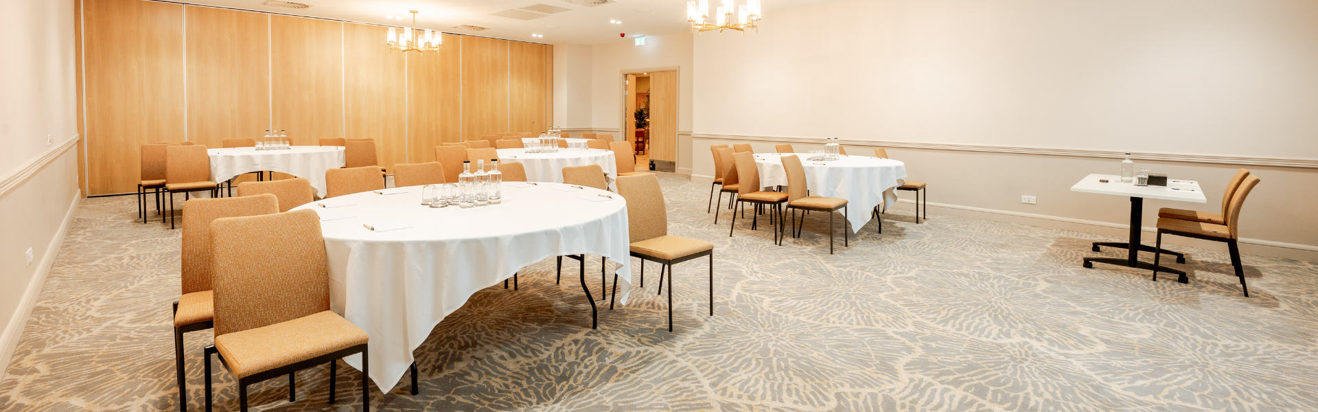 Theatre: 120 | Cabaret: 56 | Classroom: 56 | Boardroom: 40 | U-shape: 40 | Exam Style: 36 | Standing buffet: 100 | Drinks reception: 100 | Banquet: 70