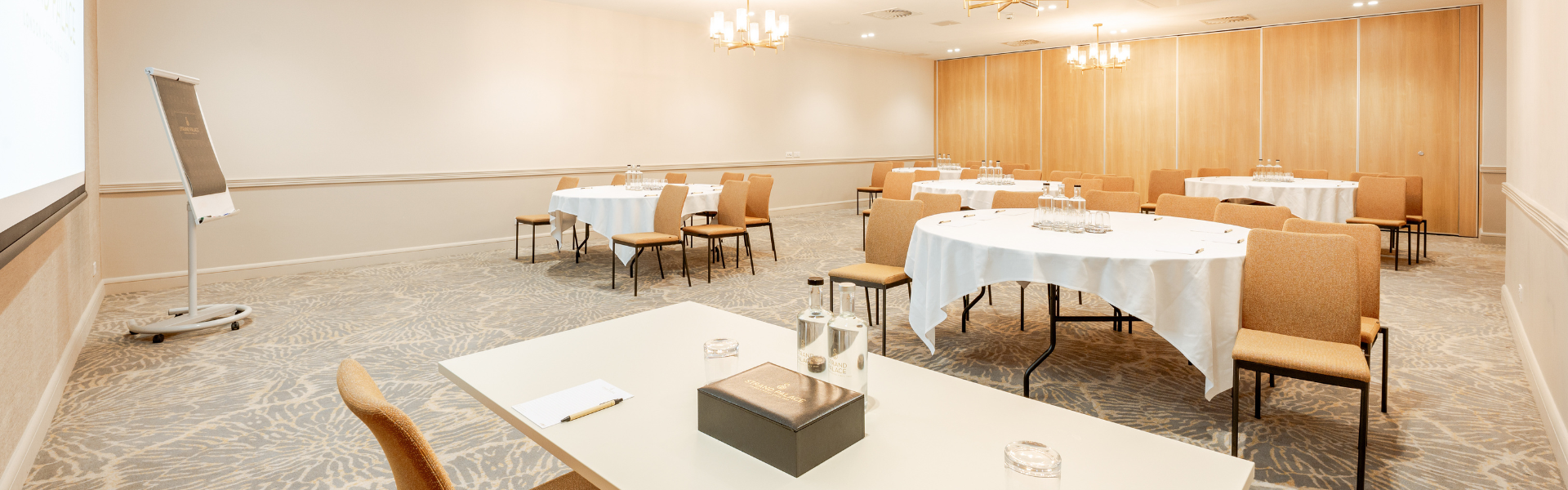 The largest suite in our inventory, located directly off the foyer, is ideal for conferences, private banquets, drinks receptions and more. In theatre setup, it accommodates 250 delegates, while it will comfortably seat 130 people for dinner.