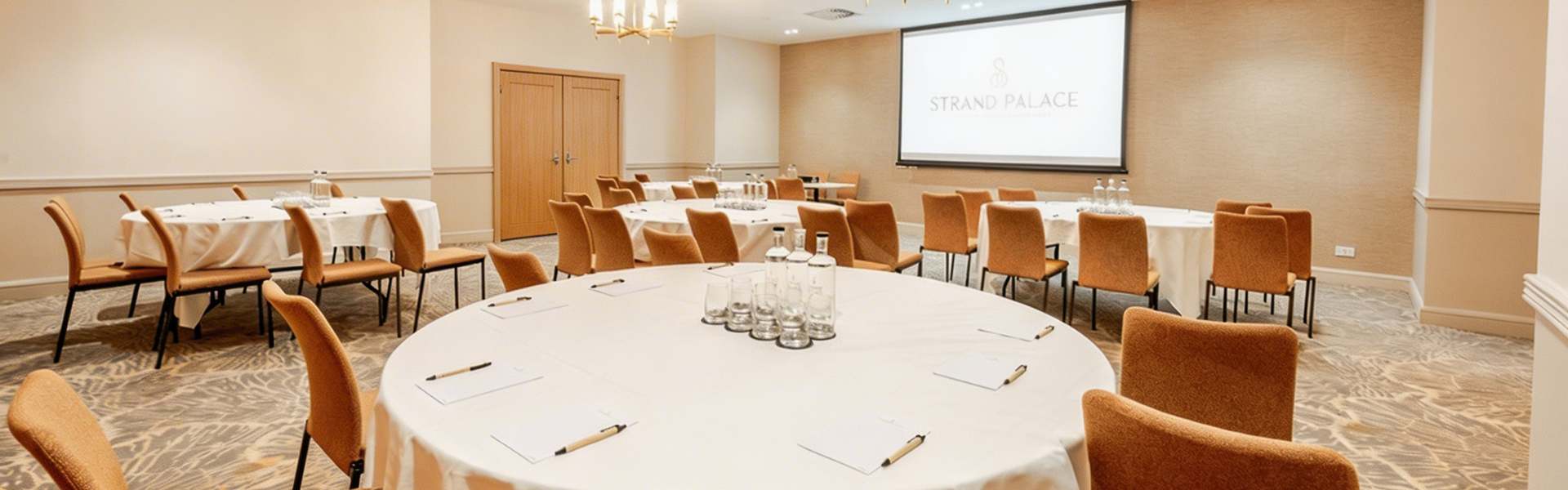 The largest suite in our inventory, located directly off the foyer, is ideal for conferences, private banquets, drinks receptions and more. In theatre setup, it accommodates 250 delegates, while it will comfortably seat 130 people for dinner.
